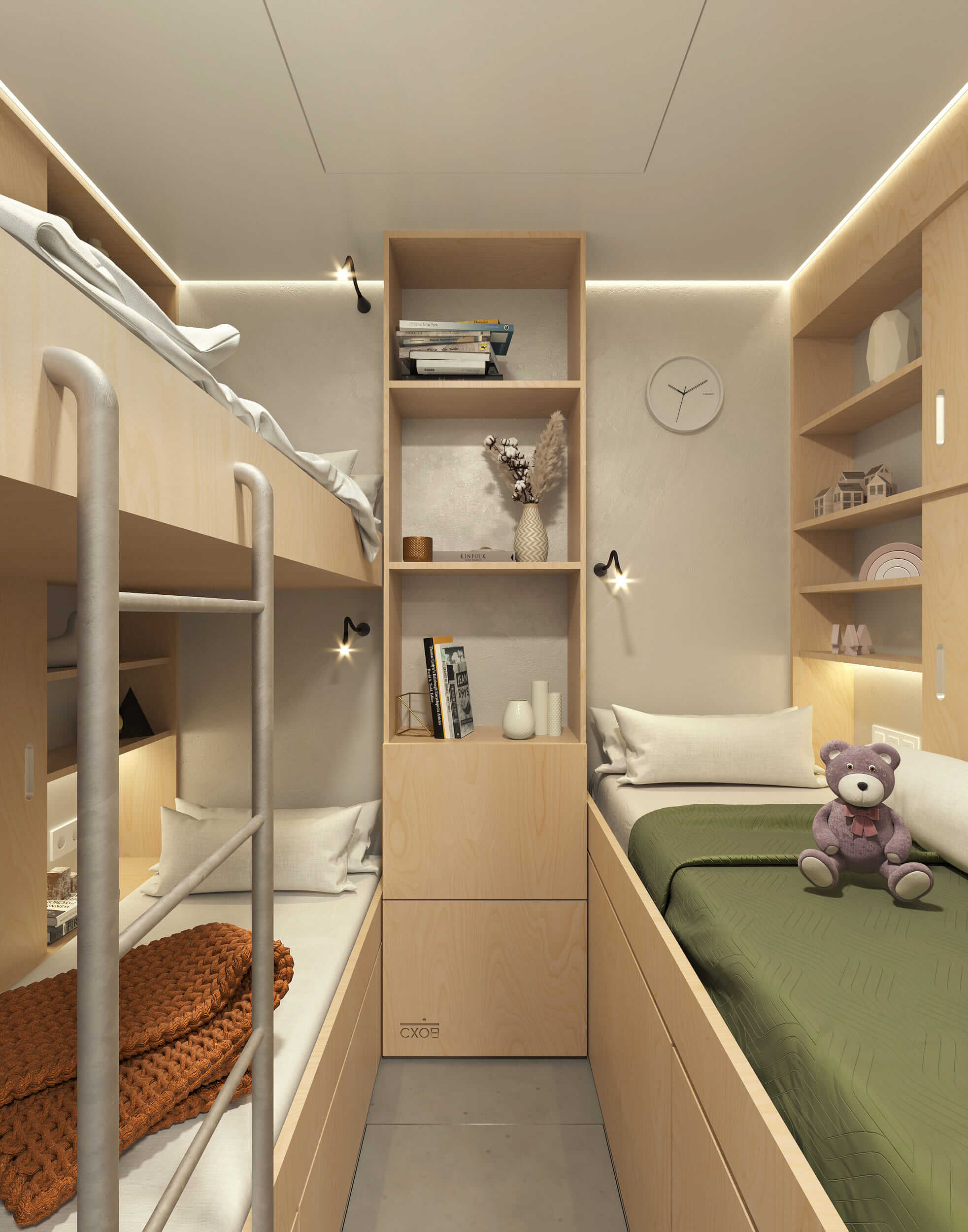Містке підпіл’я об’ємом 4 кубичних метра з морозильною камерою, окремим місцем зберігання для продуктів, сейфом для цінних речей та шухлядами для одягу.